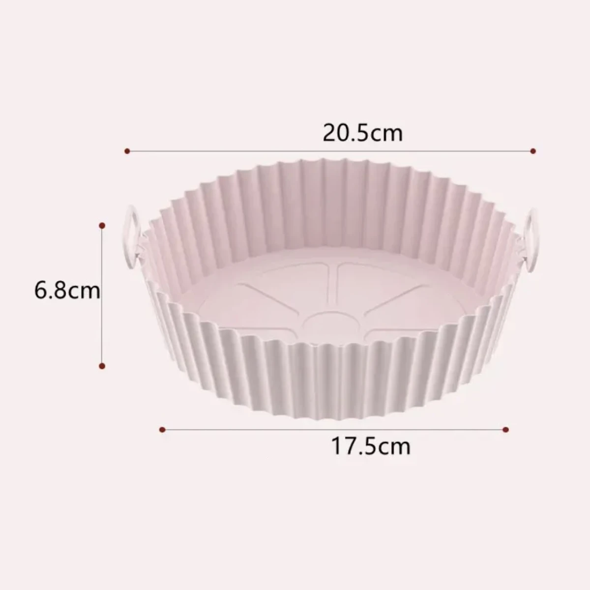 Las dimensiones de este molde de silicona son las siguientes: diámetro de 20.5 cm, fondo de 17,5 cm y altura del borde de 6,8 cm. El paquete contiene 1 unidad de forma redonda de silicona.